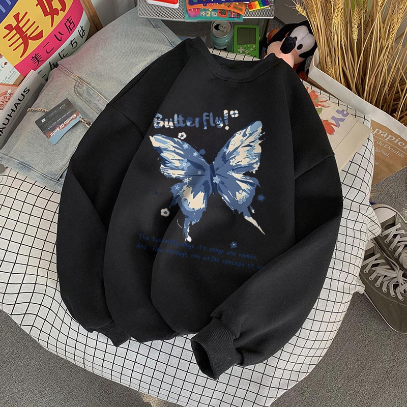 Forteid Sweater Lengan Panjang Oversized Street Style Korean Style/Switer Wanita Oversizecetakan Cetakan Kupu-Kupu Mode
