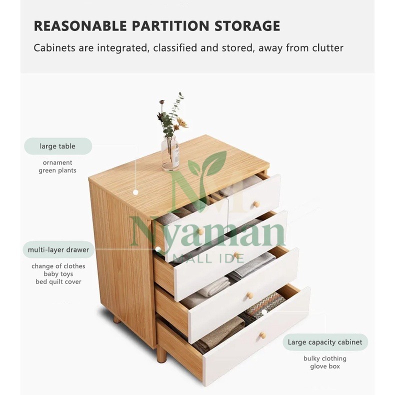 NYAMAN Lemari Laci Penyimpanan Rapi Kamar Ruang Tamu Tahan Lama Pegangan Lucu & Kaki Stabil