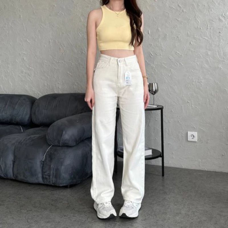 Hansfcty Dax Jeans - Celana Jeans Wanita Highwaist Straight Cut Import Panjang Korea Loose Premium Quality Highwaist Kul