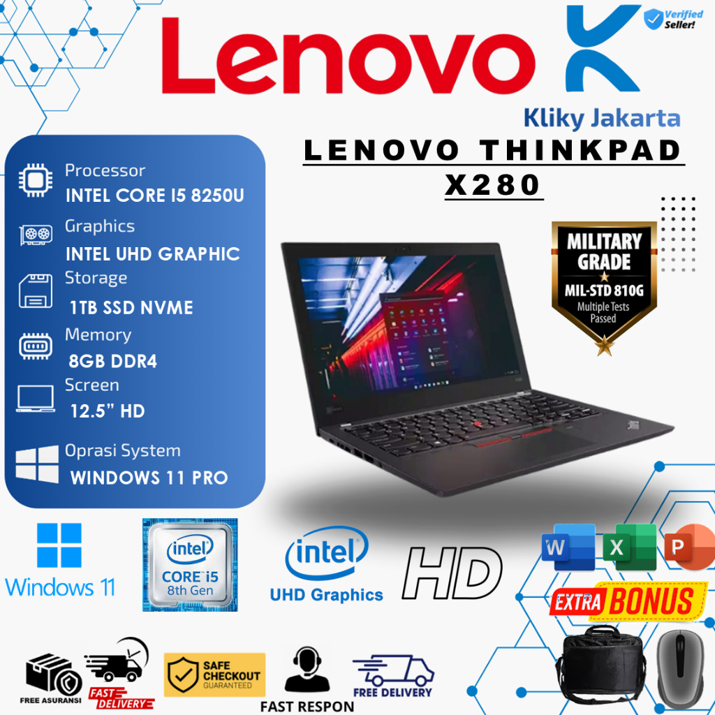 Laptop TouchScreen Lenovo Thinkpad X280 Intel I5 8250U Ram 8GB 1TB 12.5 FHD TOUCH Windows 10 Pro