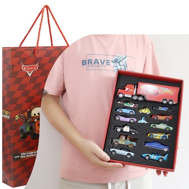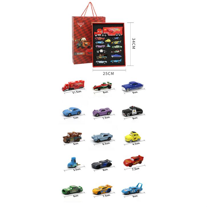Mobil Mainan Disney Pixar Cars Trailer Set Metal Besi 1 : 55 alloy Gift Set Isi 15