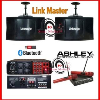Paket Karaoke Sound System Speaker LinkMaster 10 Inch Original Amplifier Bluetooth 2 Unit Mic Wireless Ashley