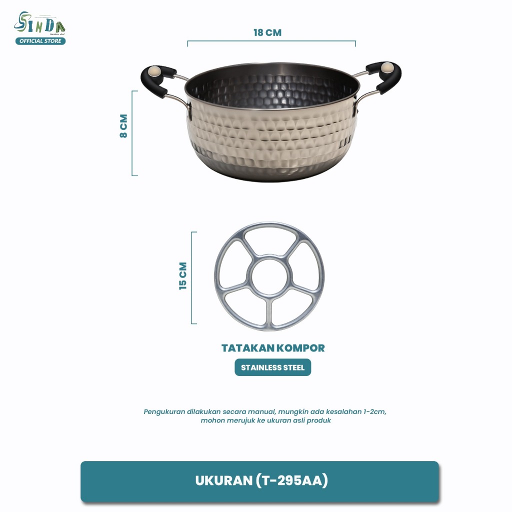 Sinda Panci Sup Stainless Steel Tebal dan Kuat Set 2 Pcs (16 & 18 CM) | Food Grade & Anti Karat