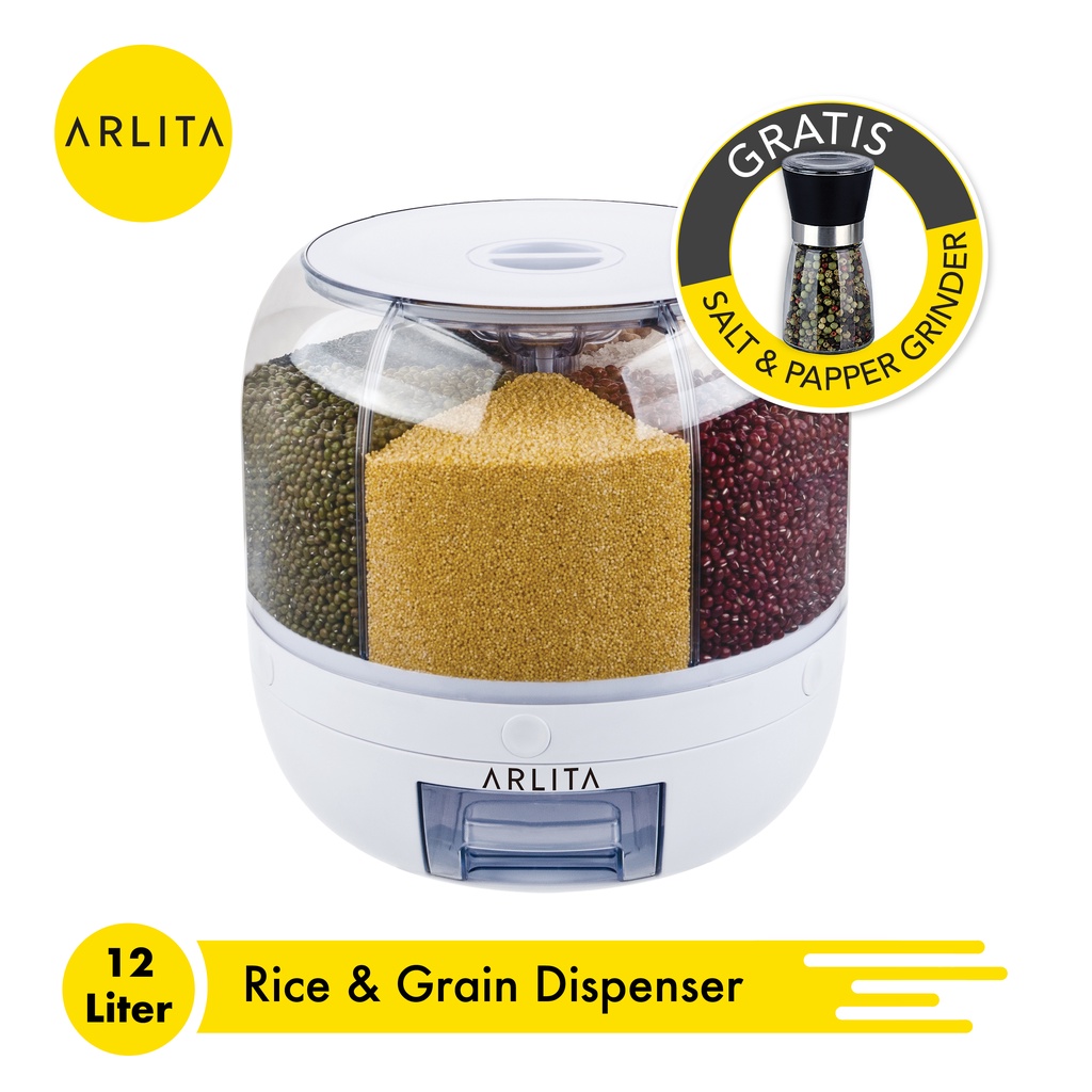 ARLITA ARD-1210 Rotating RICE & GRAIN DISPENSER Wadah Penyimpanan Beras, Sereal, Kacang - Kacangan, Biji - Bijian Putar 360 °
