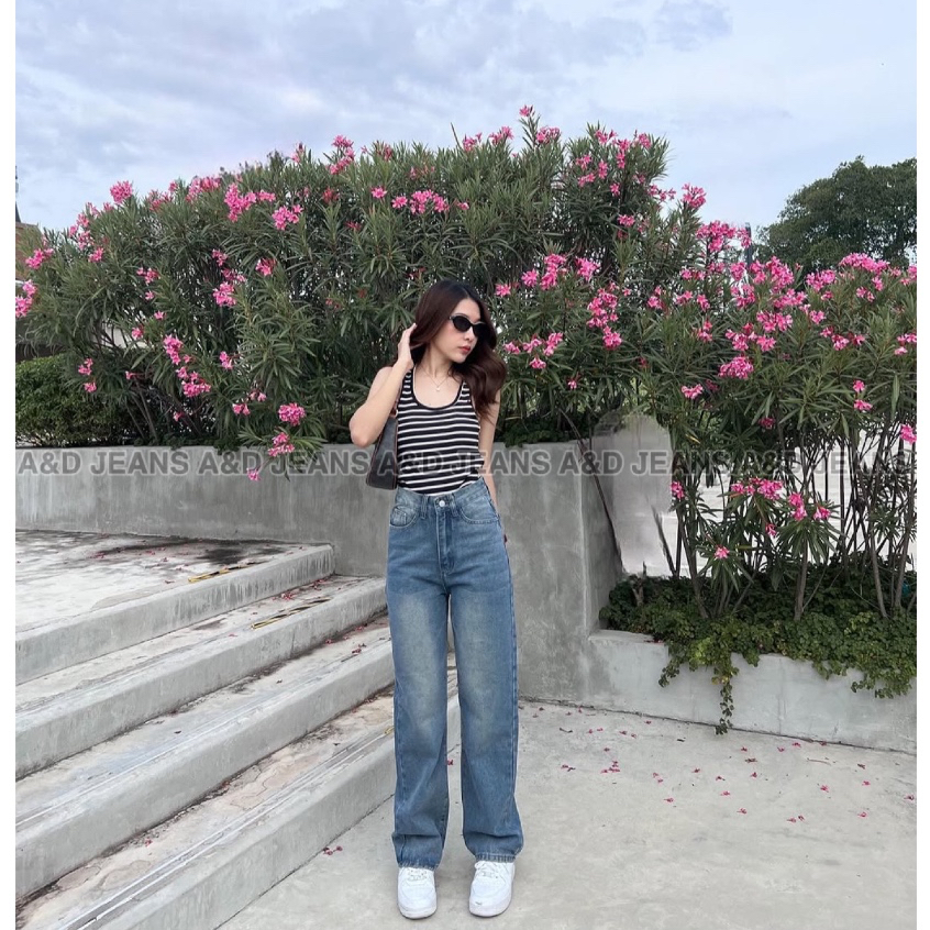 Highwaits Loose Adjustable Baggy Under Age Jeans Celana Jeans Wanita Kekinian Jeans Loose Straight