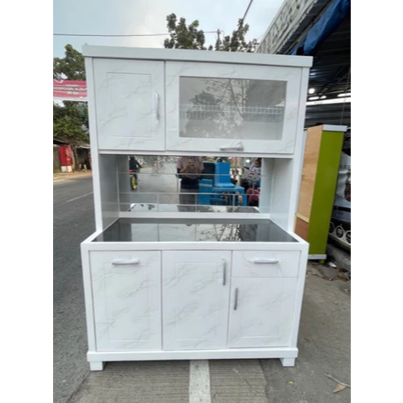Rak Sayur/Dapur 3pintu/Rak Piring Kaca Bevel Minimalis