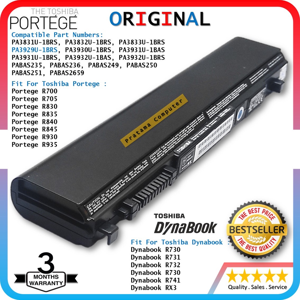Baterai Original Toshiba Portege R700 R830 R835 R845 R930 Series Model PA3932U-1BRS