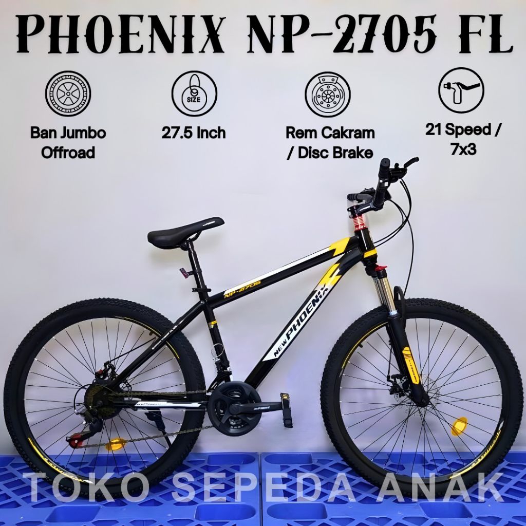 Terbaru Sepeda Gunung MTB Phoenix NP 2705 FL Ukuran 27.5 Inch 21 Speed Rem Cakram Ganda Ban Tebal Frem Kokoh