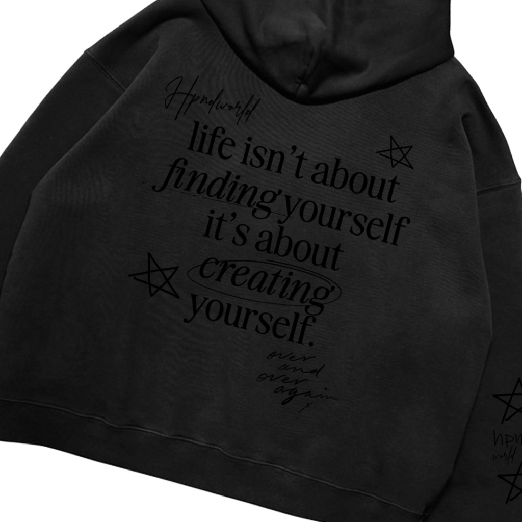 Hpnd - Sweater Hoodie Boxy Fit Original Basic Creat Yourself Black Fleece Limited Edition