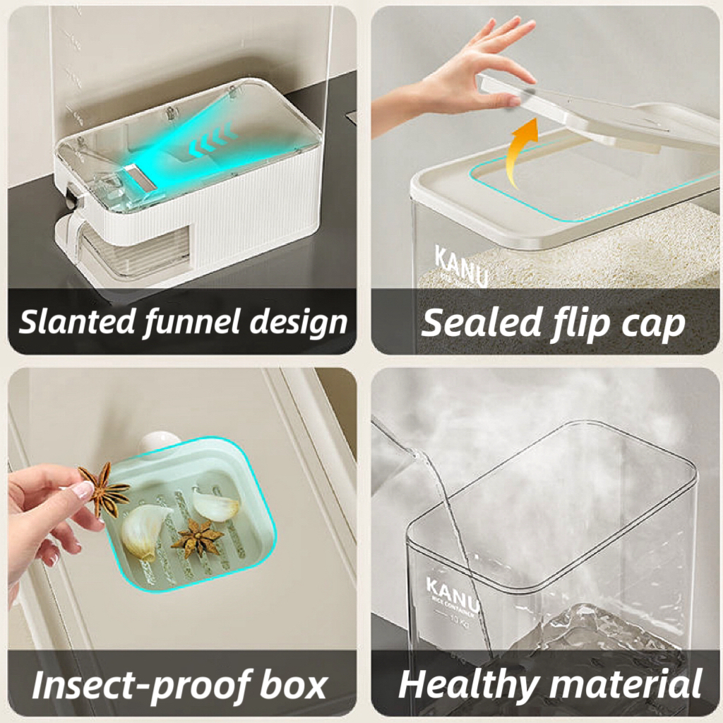 SALVO 5 Kg/10 Kg Dispenser Beras Otomatis Mewah Kotak Tempat Penyimpanan Beras Food Grade Anti Kutu
