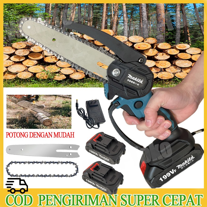 MAKITA Chainsaw 6 inch Cordless Gergaji Pemotong Kayu Gergaji Listrik 2 Baterai Handheld Chain Saw Gergaji Mini Portabe