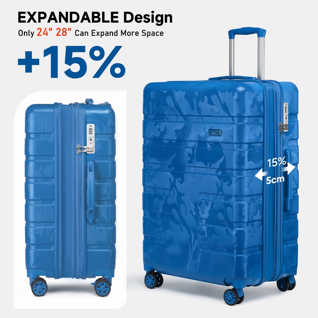 SEA CHOICE Set Koper Expandable–19” Kabin & 24”/28” Bagasi, Ringan, Anti Gores, Kunci TSA,Roda 360°