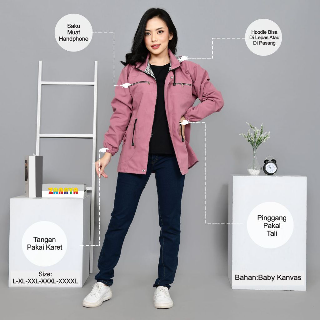 Jaket Parka Wanita Dusty Pink Big Size Size S M L Xl Xxl 3Xl 4Xl Bahan Kanvas 10 Warna