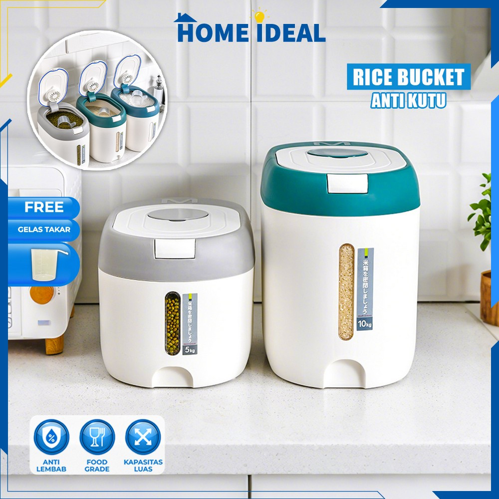 Dispenser Beras 5KG 10KG Free Gelas Takar Rice Dispenser Anti Kutu / Tempat Penyimpanan Beras Serbaguna / Rice Bucket Import HI C882