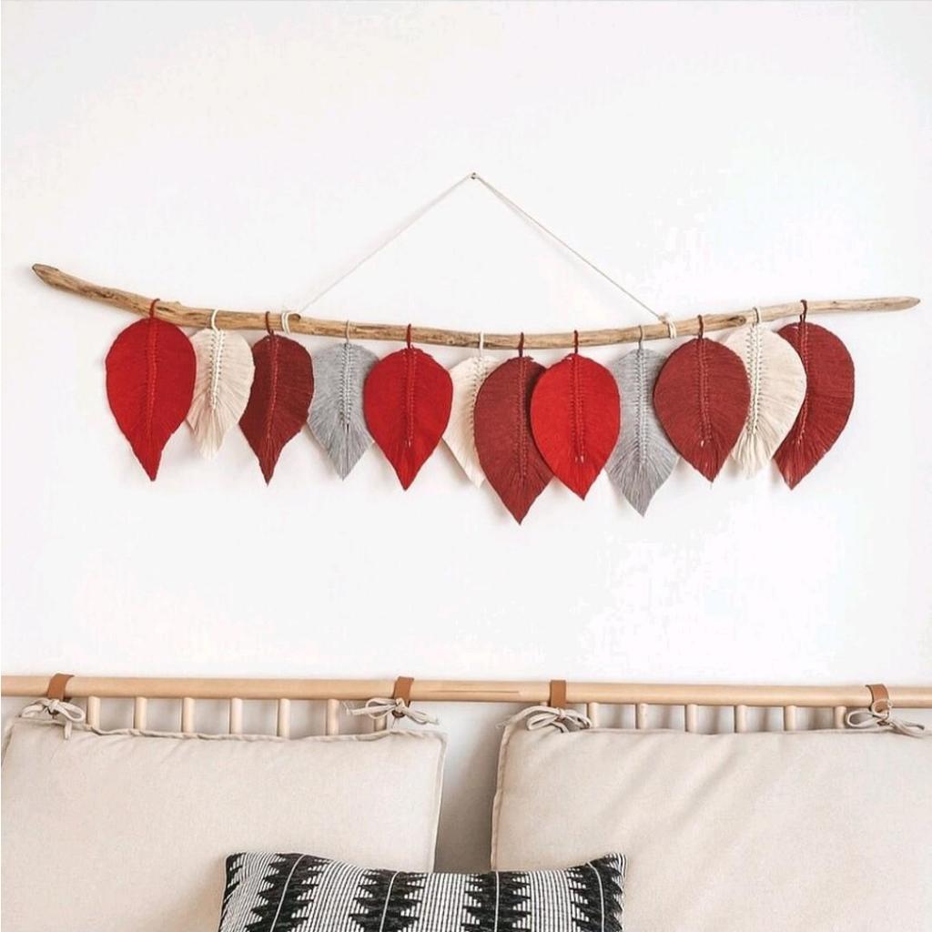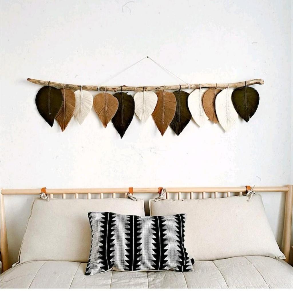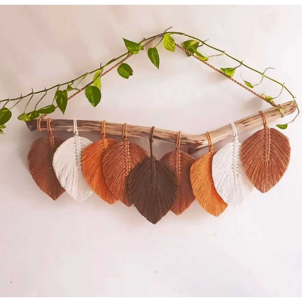 Leaf macrame vertikal -hiasan dinding daun memanjang minimalis elegant