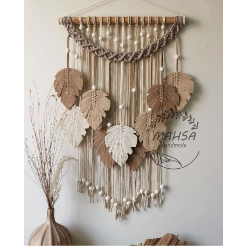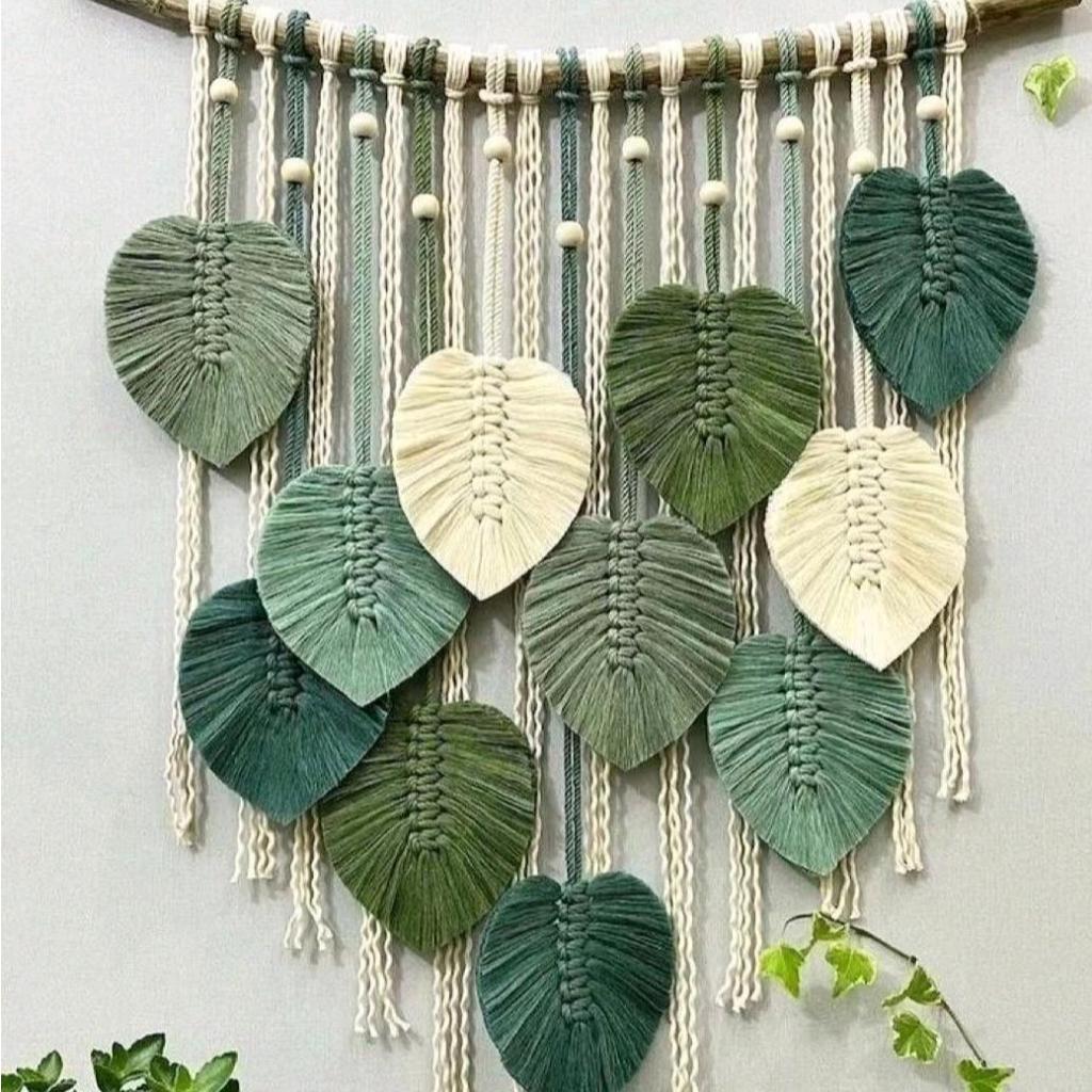 Leaf macrame nuansa hijau-hiasan dinding gantung macrame daun aesthetic nuansa hijau
