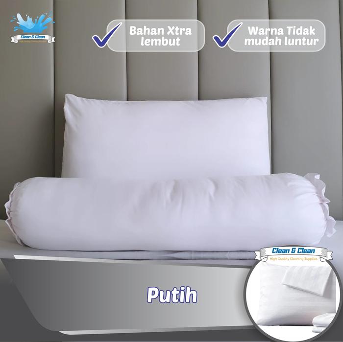 Sarung Bantal Hotel 50X70 Cotton Microtex Salur | Sarung Guling 35X100 - Putih, Sarung Guling