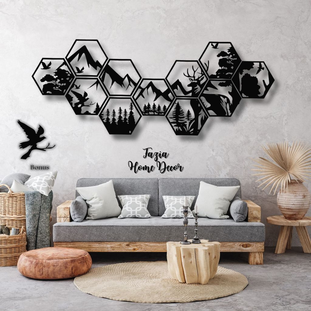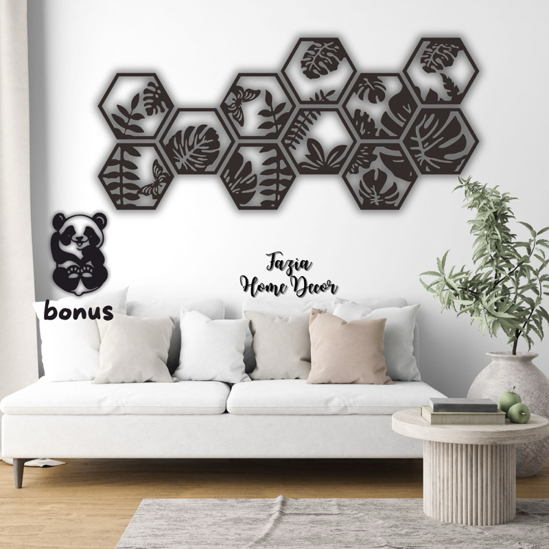 WALL DECOR 3D HEXSAGONAL KERAJINAN KAYU AESTETIK