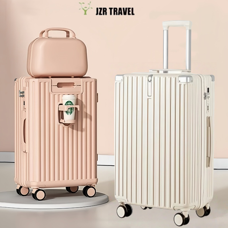 Koper terbaru 2025, ukuran 18/20/22/24/26/28 inci, kapasitas besar, koper pengisian daya USB dengan tempat gelas A909