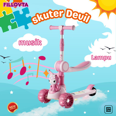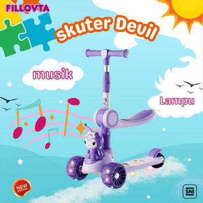 Mainan SKUTER anak Model KUKUROMINI Scooter Otoped SNI Musik Bangku kursi Footstep Lampu Roda 3 Multifungsi indoor outdoor