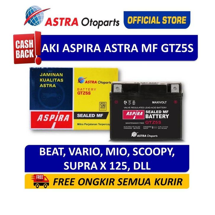 Aki Motor Aspira Mf Gtz5S Gm5Z3B Gtz6V Beat Vario Scoopy Mio Jupiter Vega Vario 125 Vario 150 Iss