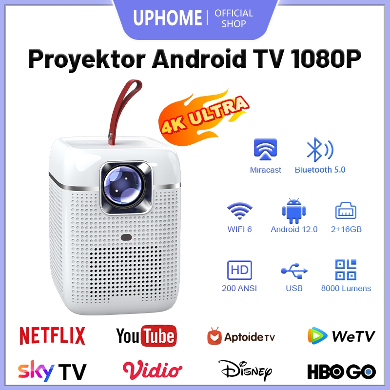 Proyektor Mini Android Layar Tancap Untuk HP Infocus Murah 4K Full HDMI Led TV Home Theater Dukungan Mirroring