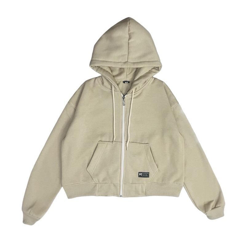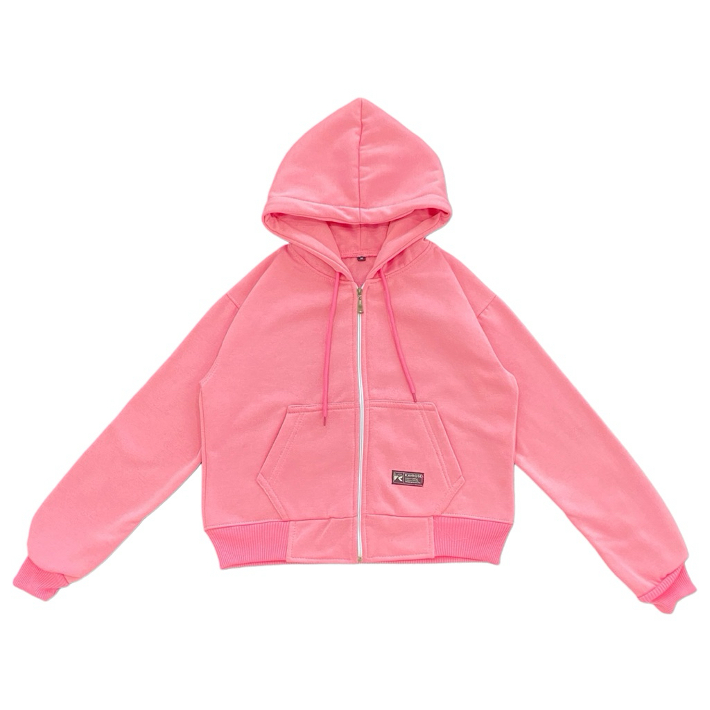 Jaket Hoodie Zipper Crop Polos Wanita Fleece Tebal