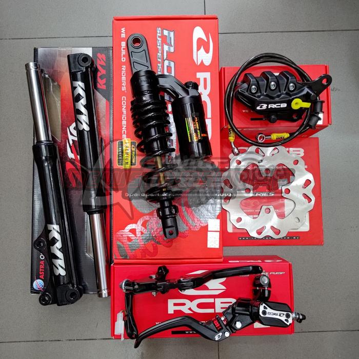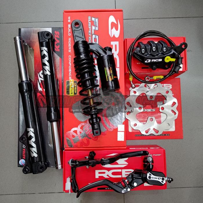 Paketan Master Rem Rcb E3+ Plus 14Mm Set Kanan Kiri + Kaliper Rcb 2 Piston + Shock Depan Kyb Zeto + Belakang Flowpro 330