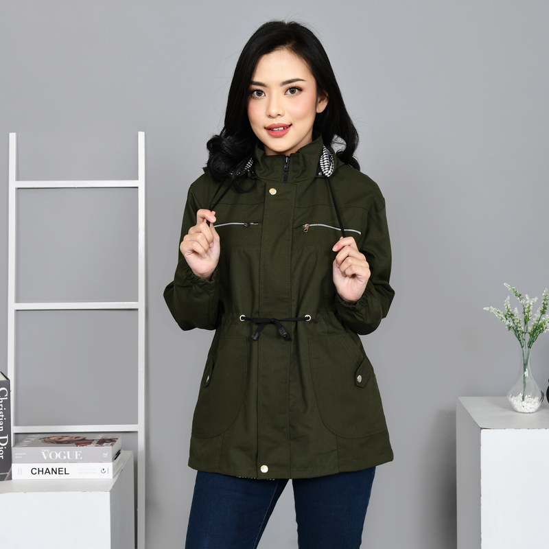 Jaket Parka Cewe Kekinian Jumbo Panjang Bahan Baby Canvas Ukuran L Sampai 4Xl