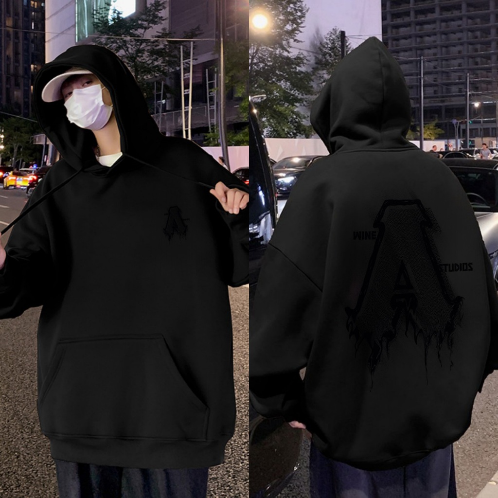Disneay Hoodie Pria Oversize Vintage Premium | Dengan Cetakan Huruf A Cetak Pola Putih Hoodie Boxy | Hoodie Pria Keren Sweatshirt Hoodie
