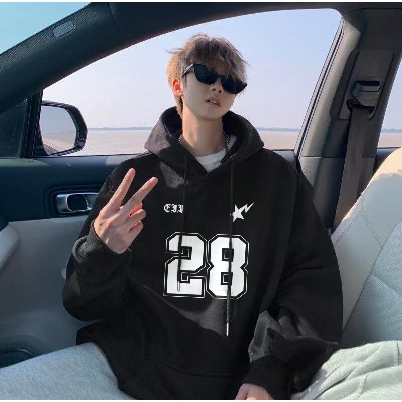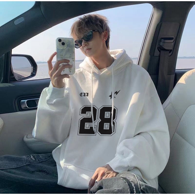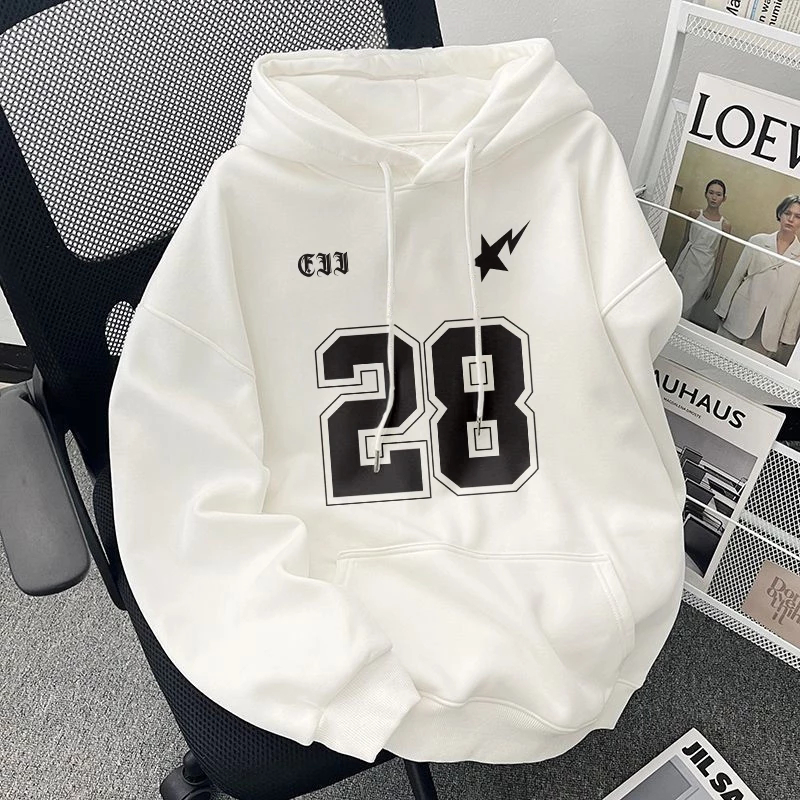 Disneay Hoodie Pria Boxy Putih Sweater Hoodie Tren Retro /Pola Bintang Petir No.28 Baju Club Keren Sweater Pria Jumbo / Hoodie Pria Original 100 PERSEN Bahan Tebal Keren
