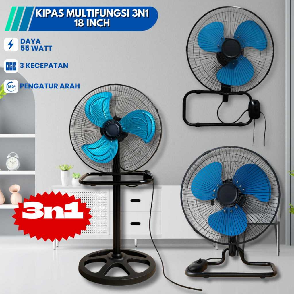 KIPAS ANGIN LANTAI 3 IN 1 18 INCH / KIPAS DINDING / KIPAS ANGIN BERDIRI MULTIFUNGSI