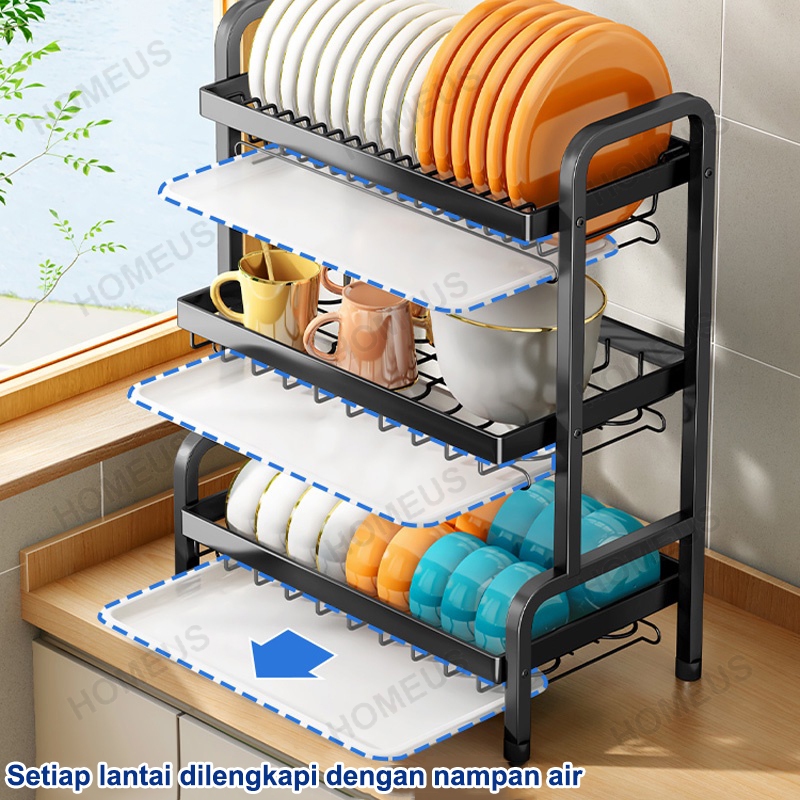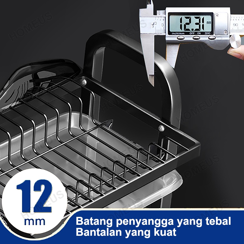 Homeus Rak Piring Rak Cuci Piring Penyimpanan Dapur Stainless Steel Muat Mangkuk Dan Piring