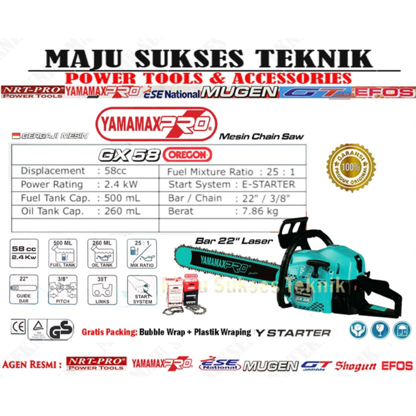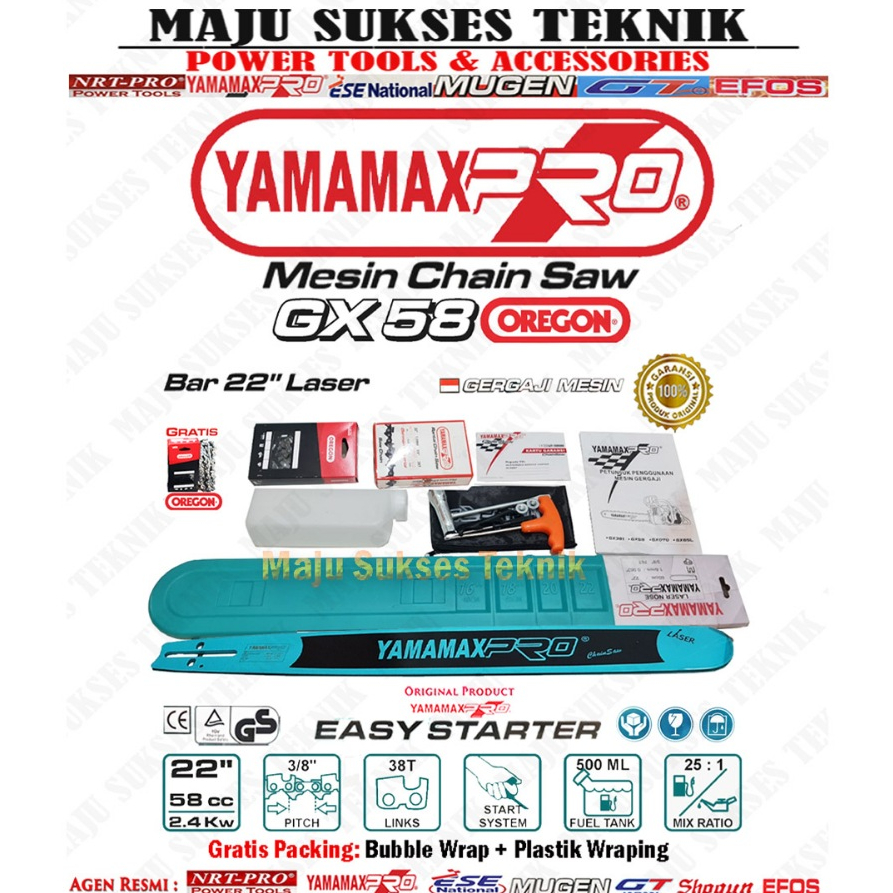 YAMAMAX PRO GX 58 Oregon Mesin Chainsaw Gergaji Potong Pohon Kayu 22 Inc Bar Laser Senso 22Inch GX58