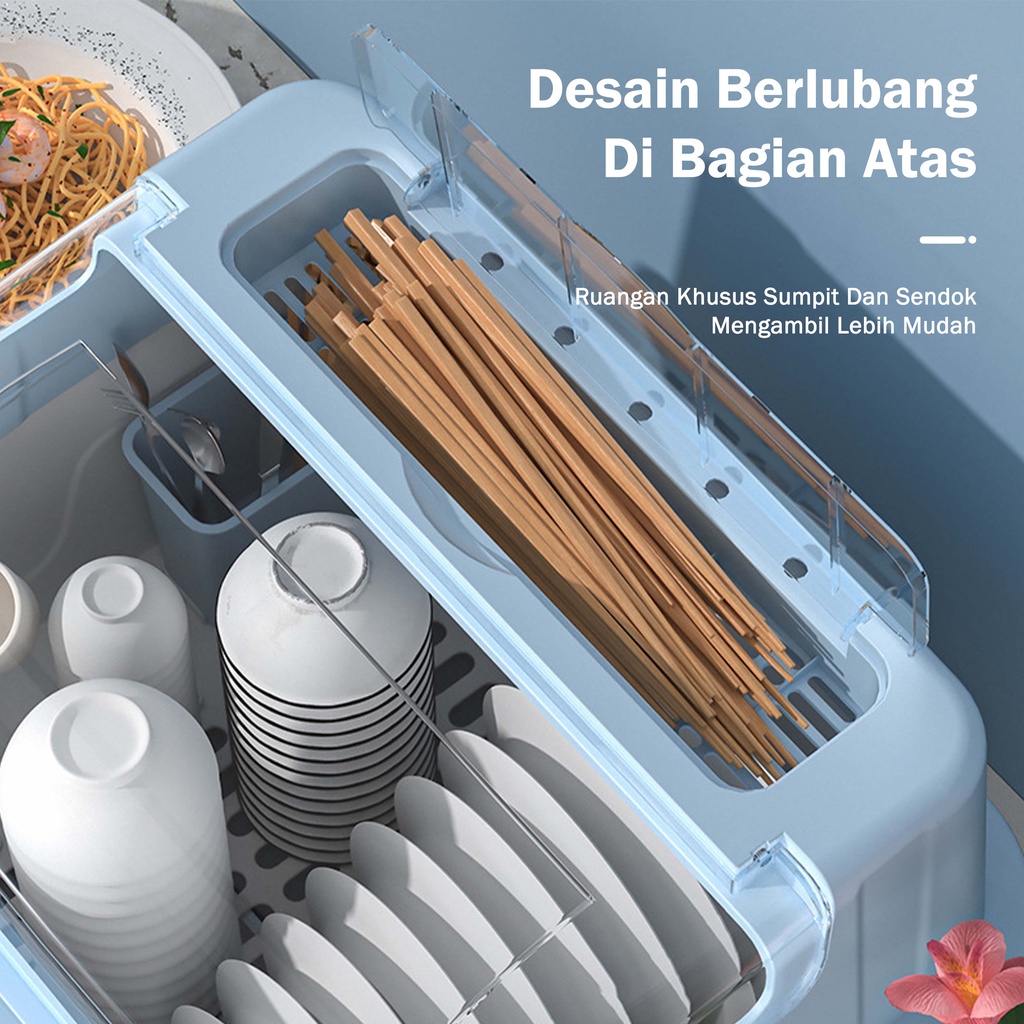 DESOWOCO Rak Pengering Air Mangkok Rak Piring Plastik Dengan Tutup Rak Piring/Mangkok/Sendok/Garpu Rak Dapur