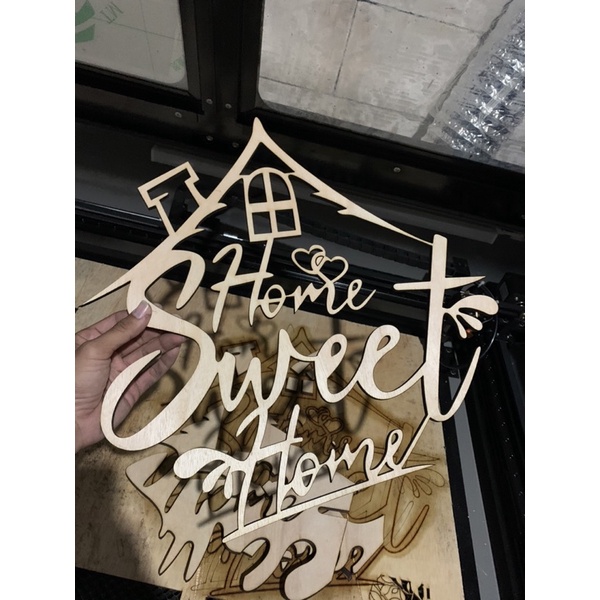 KREASI KAYU (3D ) (40x40cm) Hiasan dinding Home - Spesial Decor HOME timbul Tulisan home sweet home Dekorasi Dinding