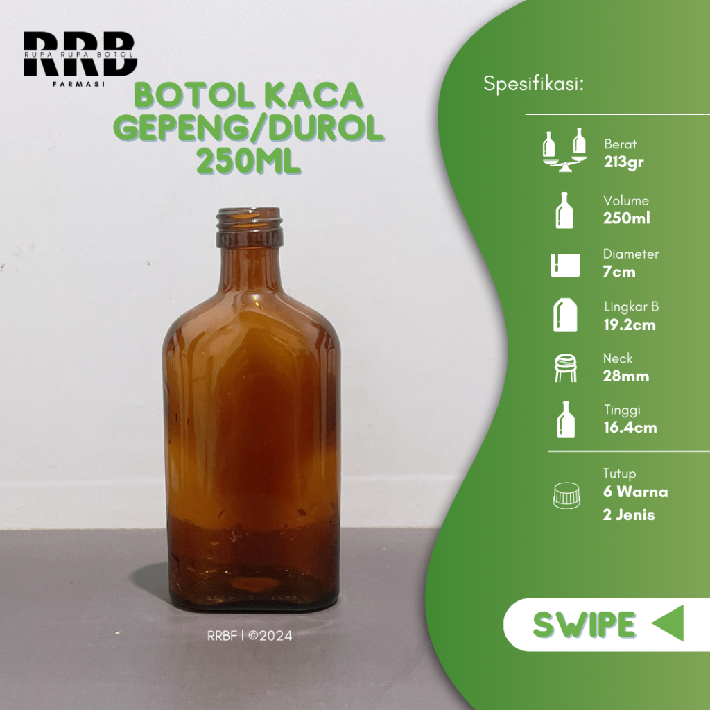 (Paket isi 22pcs) BOTOL KACA GEPENG COKLAT 250ML NEW