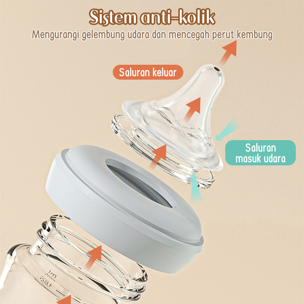 Mumystation Botol Kaca Asi 80/160ml Botol Susu Bayi Anti Kolik