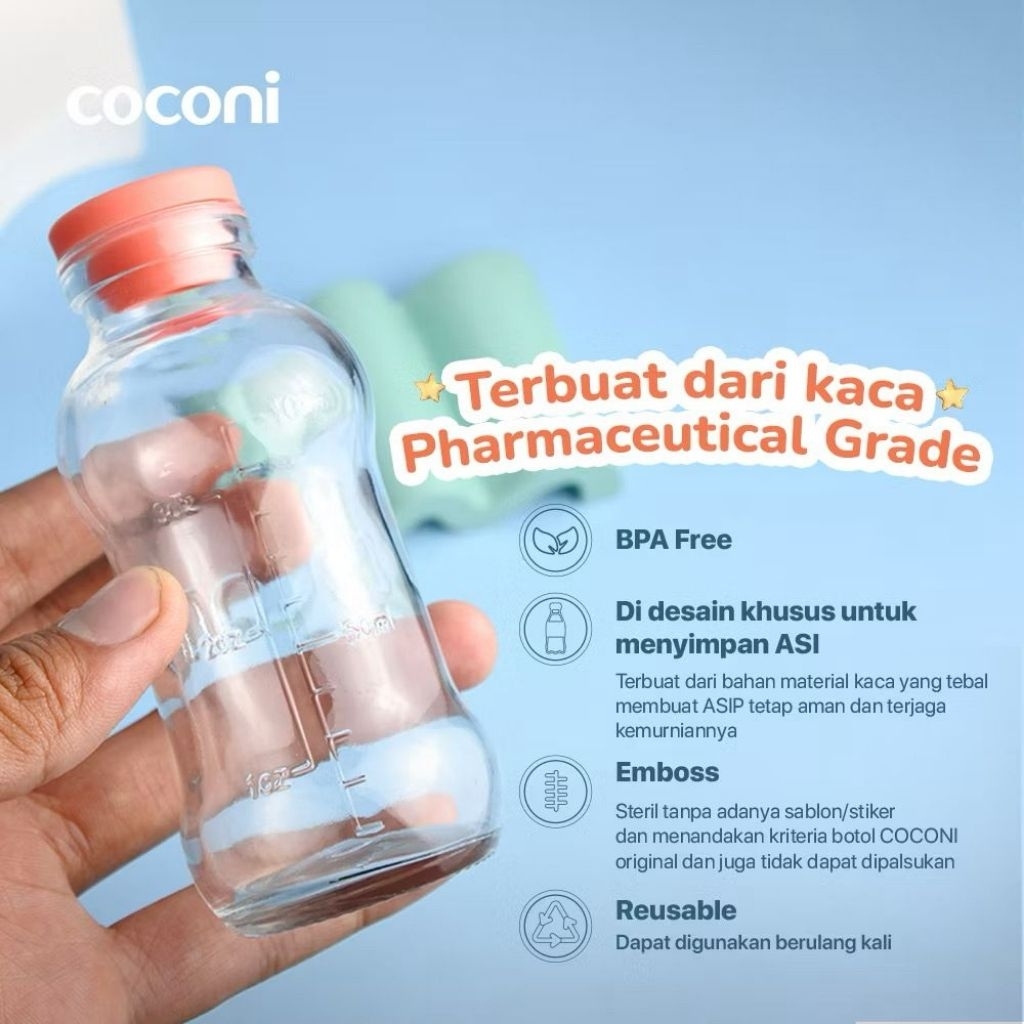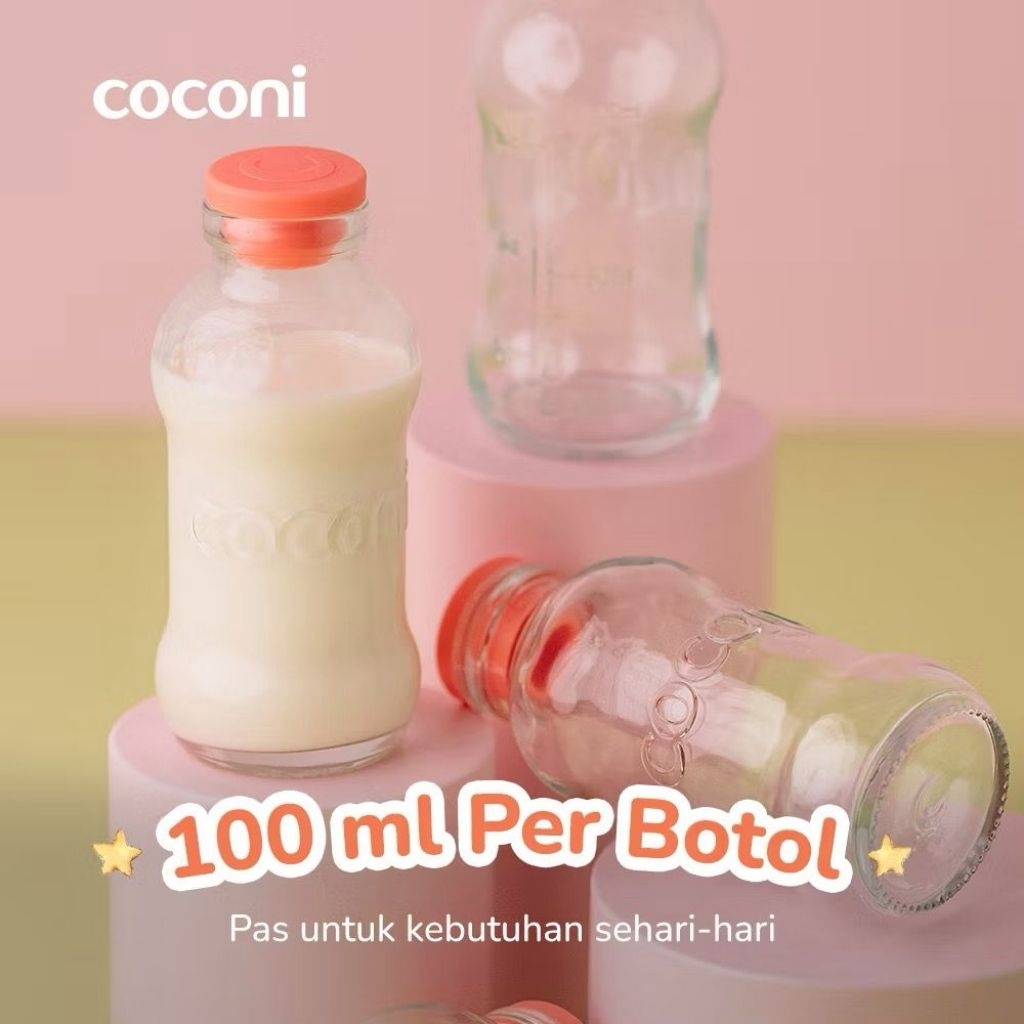 COCONI Breastmilk Storage Glass Bottle 4 Pcs | Botol Kaca ASI 100ml 4 Pcs - Botol Tempat ASIP