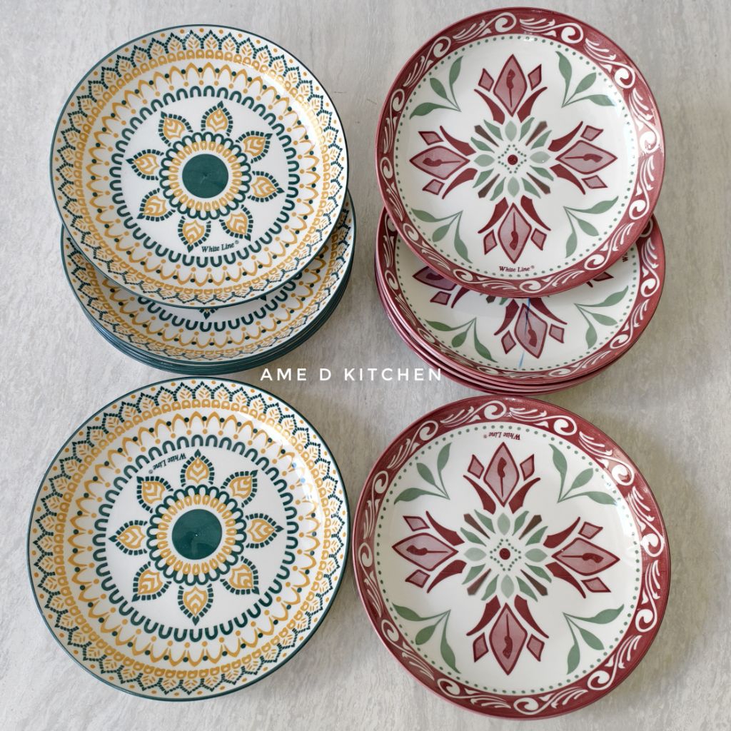 Grosir 6 Pc Piring Lauk Keramik Size 8" Motif Abstrak Shabbychic With Gift Box