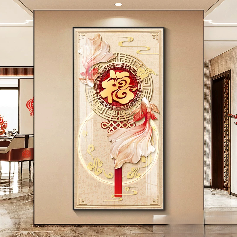 5D Diamond Painting Porcelain Simbol Fu HOK Artistik Vertikal - Hiasan Dinding Premium Mewah Elegan