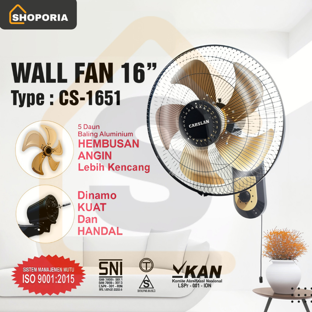 CARSLAN Kipas Angin Tornado Besi Wallfan Kipas Dinding 16inch CS-1651