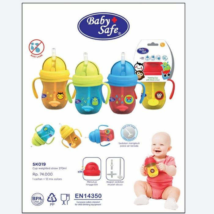BABYSAFE TRAINING CUP WITH WEIGHTED STRAW SK019 BOTOL MINUM ANAK BAYI - YELLOW-RED