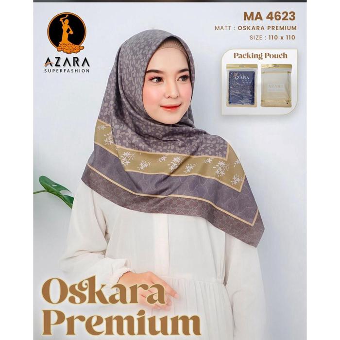 Azara Oskara Hijab Voal Segi Empat, Kemasan Pouch Metal Logo, Motif Pilihan, Harga Murah, Kerudung Square Motif Printing