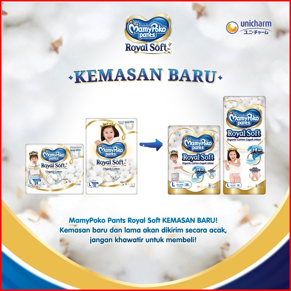 Mamypoko Pants Royal Soft Organic Cotton - M 64 - Girls - Popok Celana