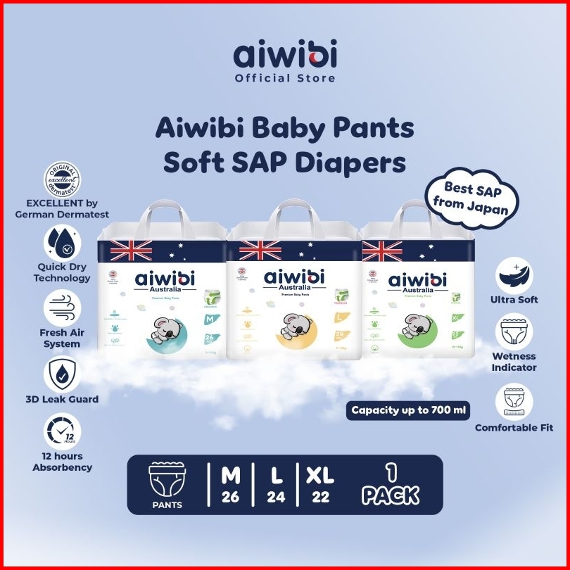 Aiwibi Premium Pants Soft Sap M26 L24 Xl22 Xxl20 Celana Popok Bayi Baby Diapers Awb12