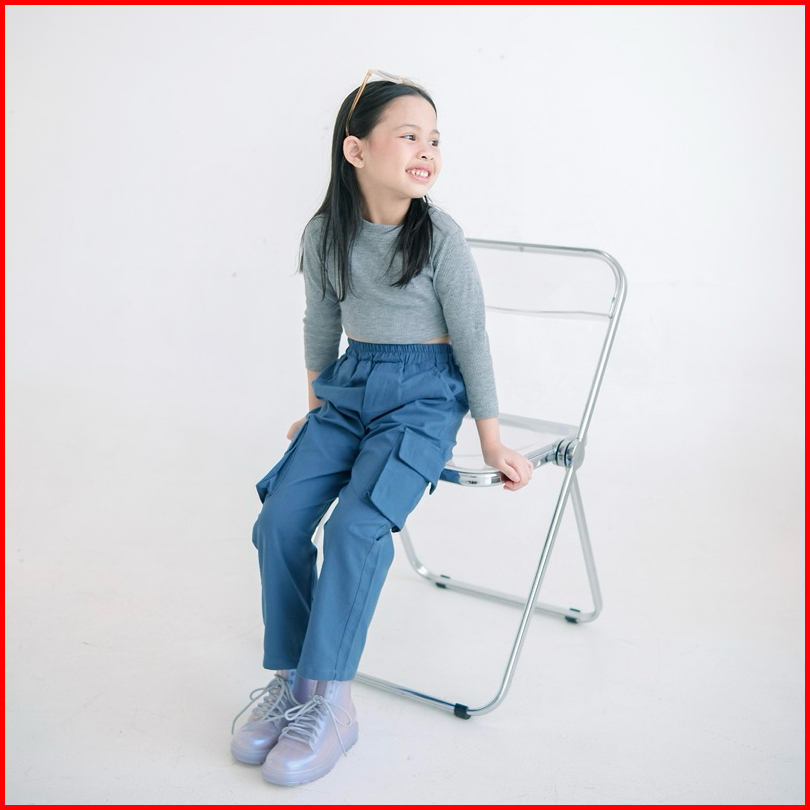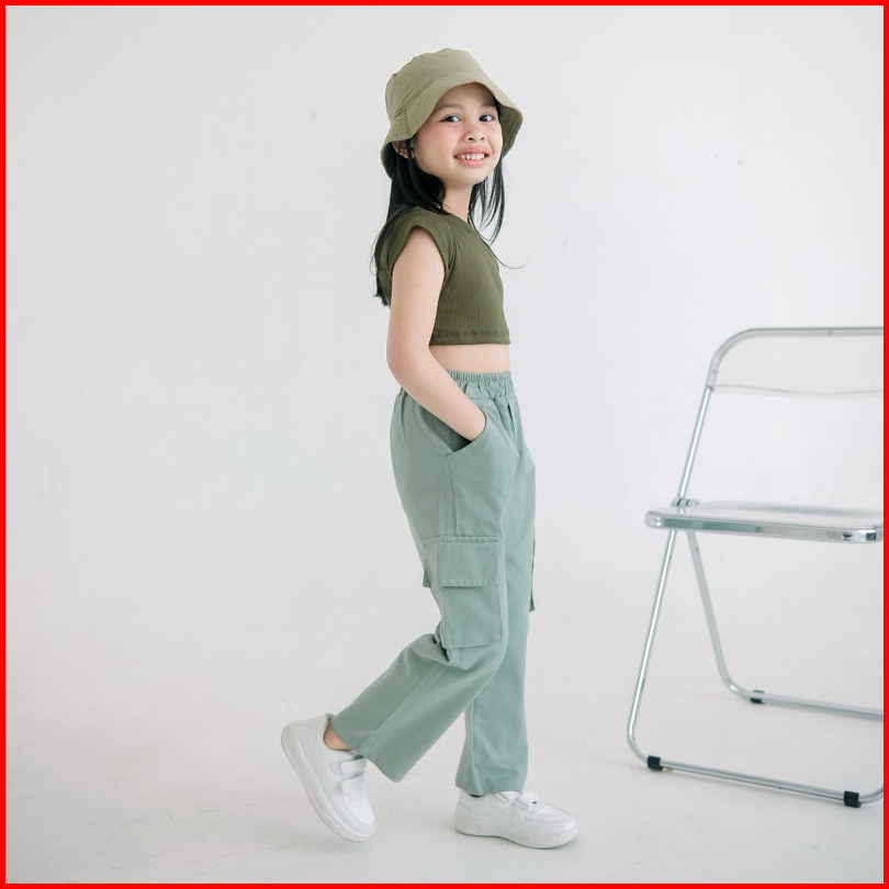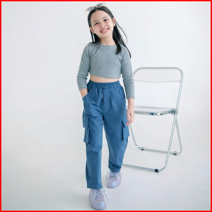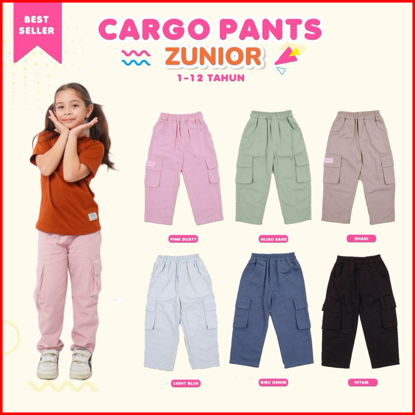 Celana Anak Perempuan Kargo Panjang Zunior Usia 1-12 Tahun