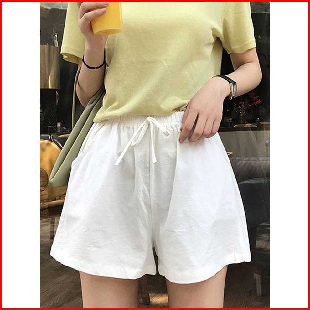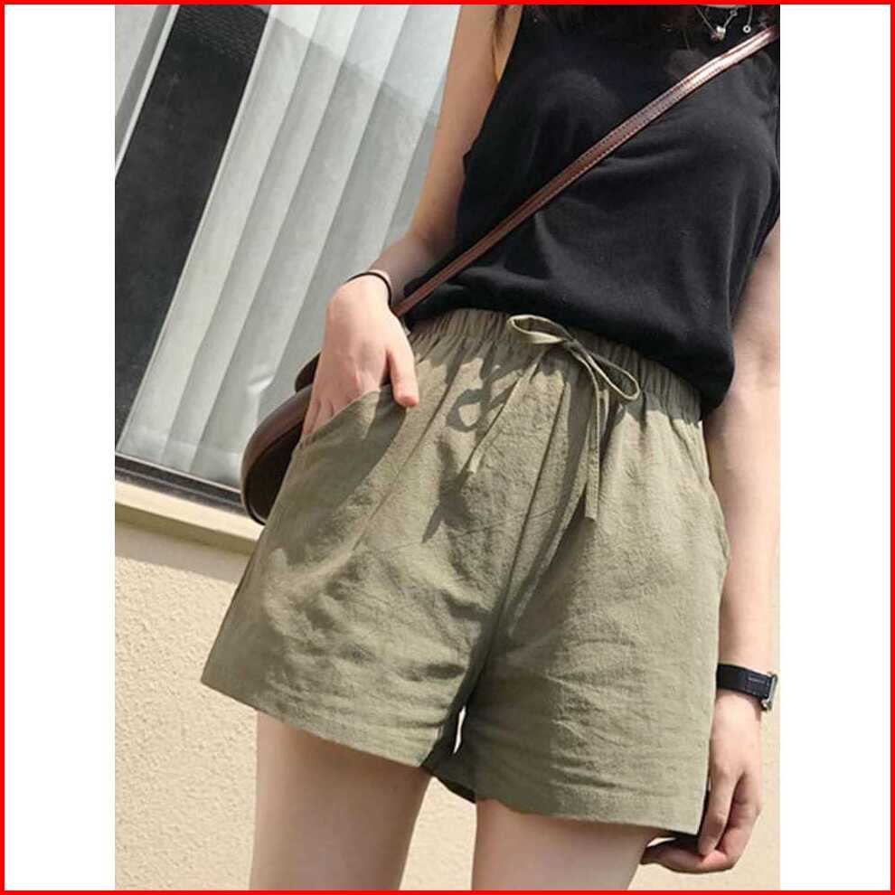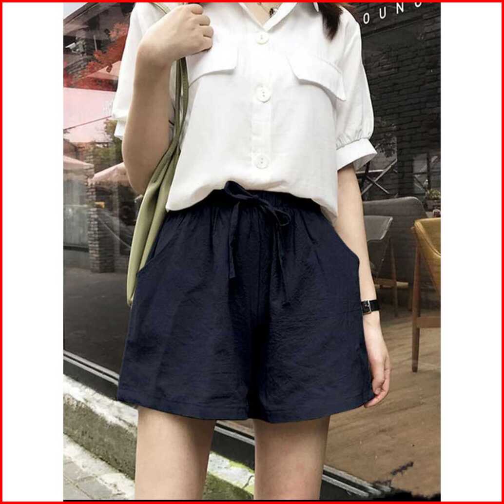 Celana Pendek Polos Wanita Bahan Katun Linen Rami Harian Simpel Harian
