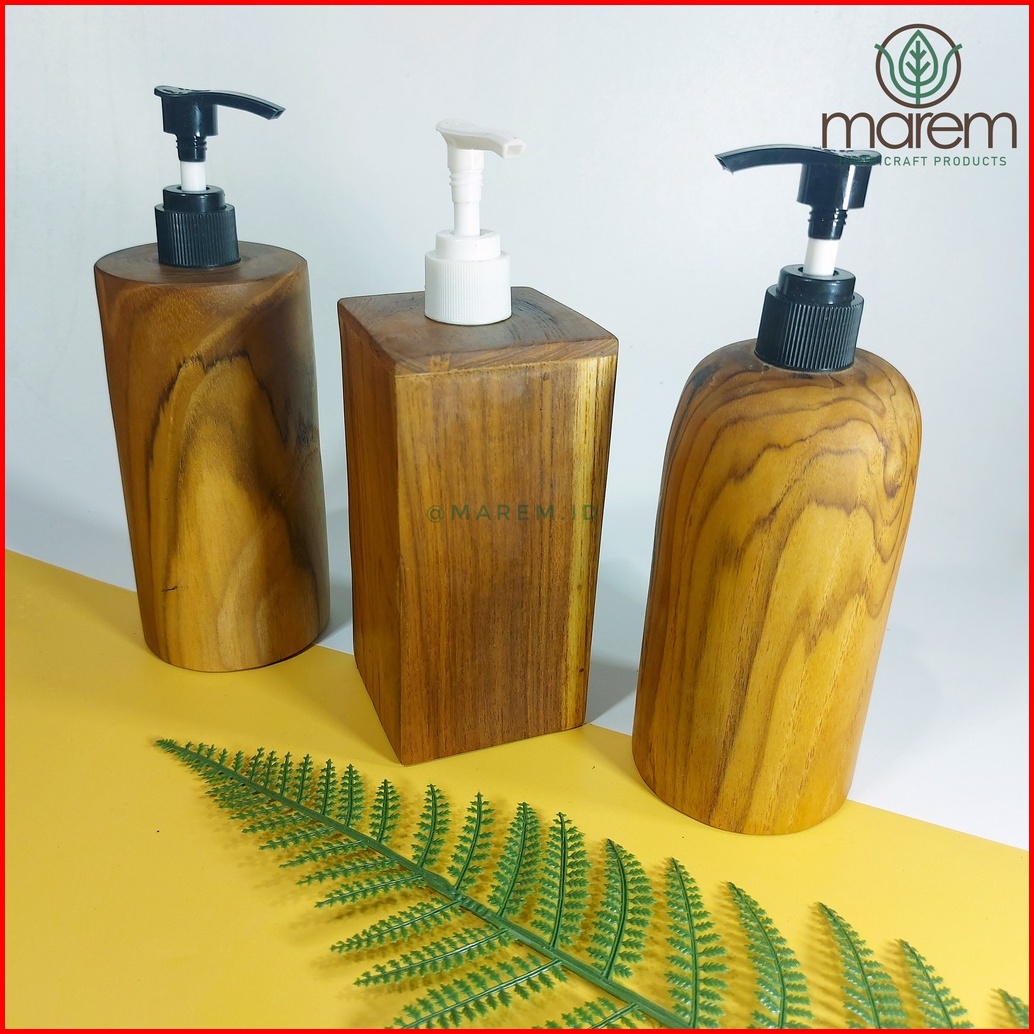 Tempat Sabun Shampo Cair Kayu Jati Wooden Soap Dispenser 250ml
