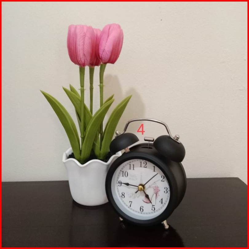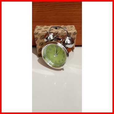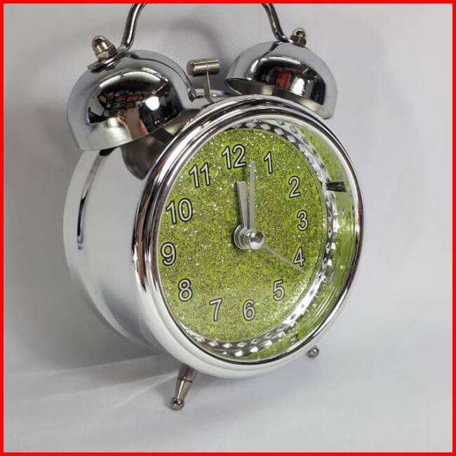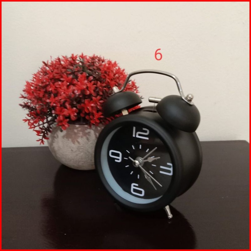 Jam Beker Kring Model Bulat Metalic Alarm Jam Beker Klasik Hitam Putih